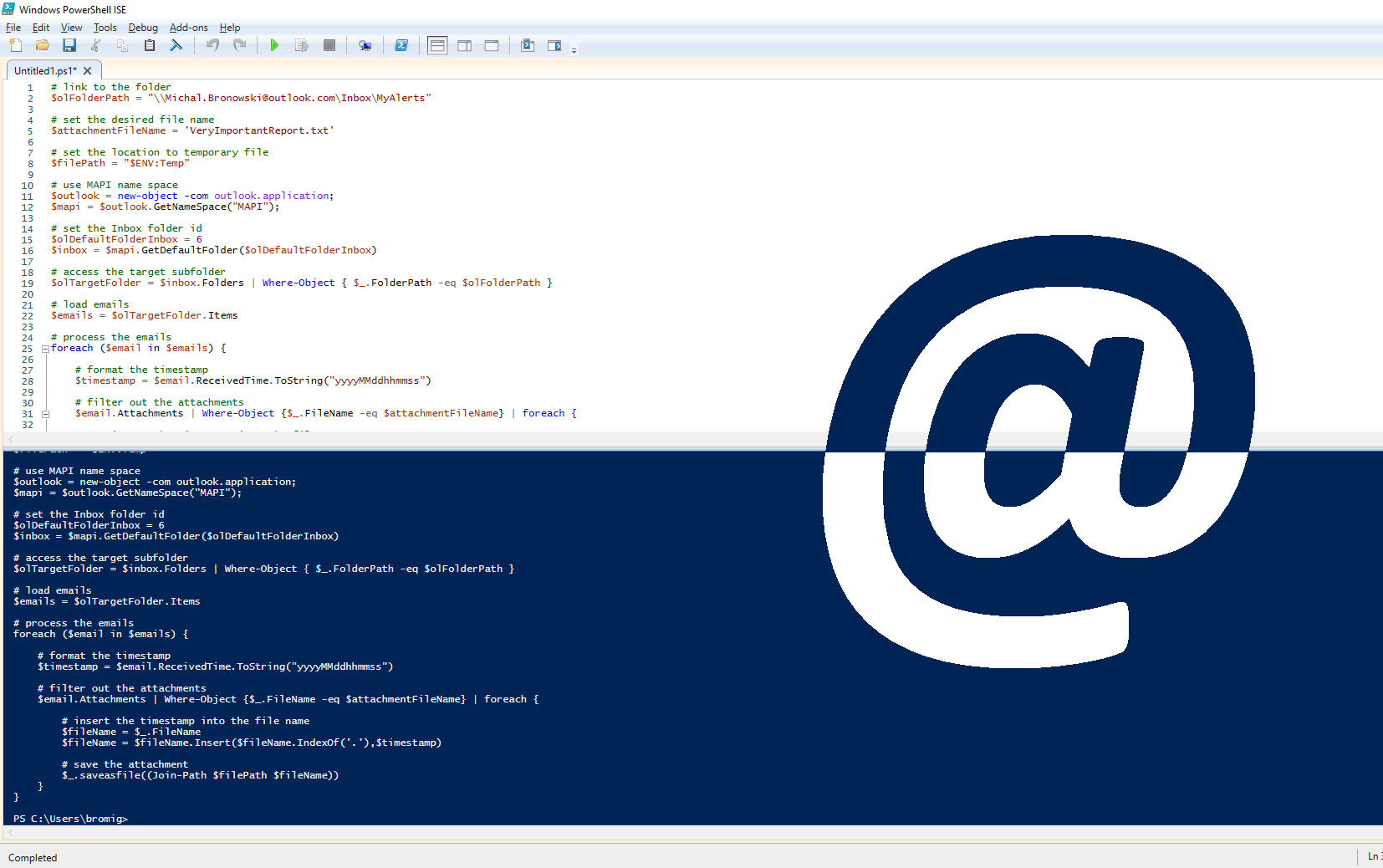 Finally, save the attachments to the folder. We are going to use the temporary folder, so it does not leave too much mess behind.